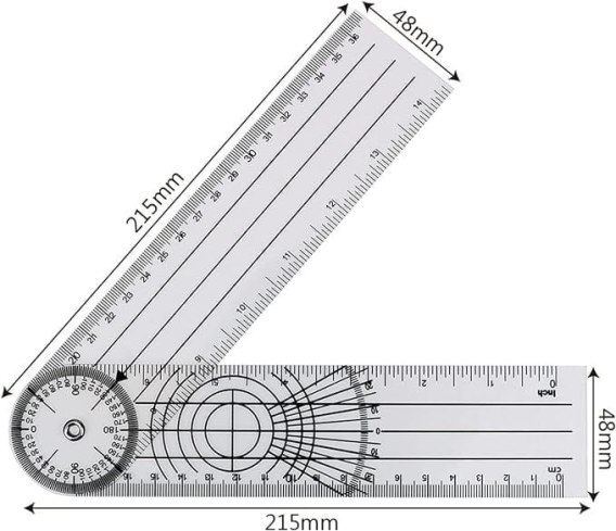 Przezroczysty goniometr z pamięcią pomiaru pomaga ocenić zakres ruchu różnych segmentów ciała w stopniach. Samohamowny charakter ramion pozwala na późniejszy odczyt pomiaru. Wykonany z elastycznego materiału.