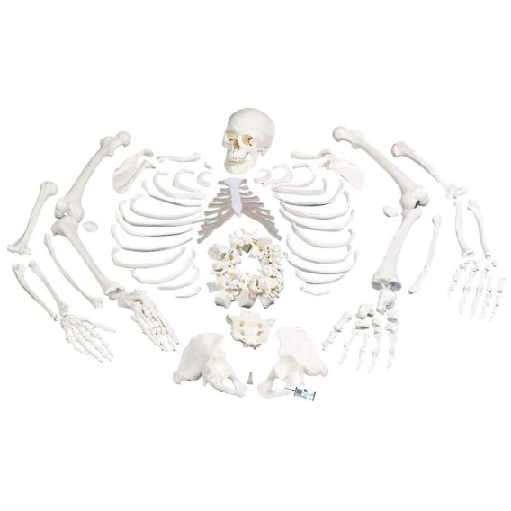 Całość zestawu zawiera komplet kości szkieletu człowieka. Idealny model mający zastosowanie w dydaktyce, pozwala na szczegółowe obejrzenie każdej kości, gdyż jest niezmontowany. Ma zastosowanie na przykład wśród studentów medycyny, fizjoterapeutów czy w szkole wśród uczniów.