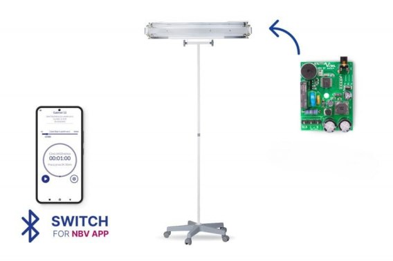 Mobilna lampa NBV 30 P BT jest wyposażona w aplikację NBV App, która umożliwia bezpieczne sterowanie nią za pomocą smartfona z systemem Android. Po sparowaniu urządzenia z aplikacją, można ją włączyć z dowolnego miejsca, a dzięki modułowi zdalnego sterowania BT Switch, można precyzyjnie kontrolować czas i parametry dezynfekcji.