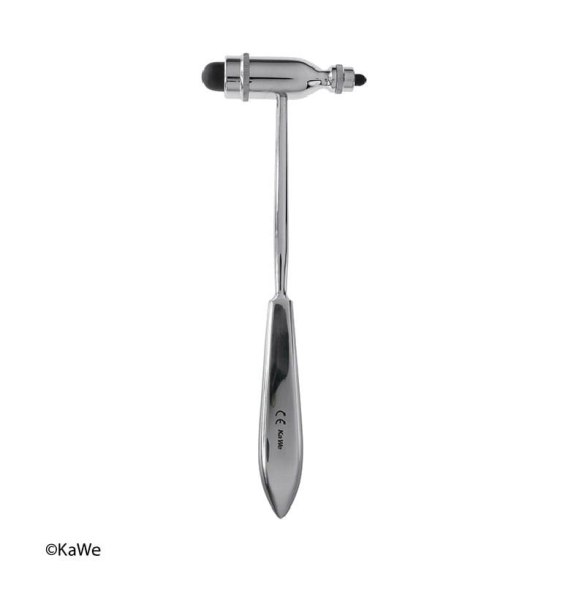 Narzędzie ma długość około 24 cm i wagę około 210g. Te poręczne parametry sprawiają, że młotek jest łatwy w obsługiwaniu zarówno przez osoby z dużymi, jak i małymi rękami. Dodatkowo, dzięki niewielkiej wadze, można go bezproblemowo przenosić ze sobą na wizyty domowe czy do gabinetu.