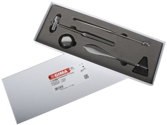 Ten zestaw zawiera 3 metalowe młotki w smukłym białym pudełku. Młotki wykonane z wysokiej jakości mosiądzu chromowanego. Doskonały zestaw do gabinetu neurologa i nie tylko. Wygodne opakowanie pozwala na przechowywanie młotków w uporządkowany sposób.