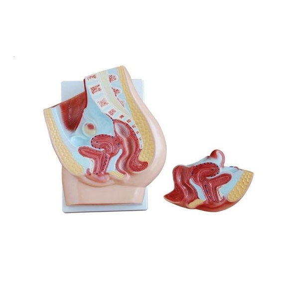 Model miednicy żeńskiej przekrój jest precyzyjnym, dwuczęściowym narzędziem dydaktycznym, które przedstawia przekrój miednicy żeńskiej. Wykonany z trwałego i wysokiej jakości tworzywa PVC, ten model jest idealny do celów edukacyjnych i demonstracyjnych, szczególnie w dziedzinie anatomii i medycyny.