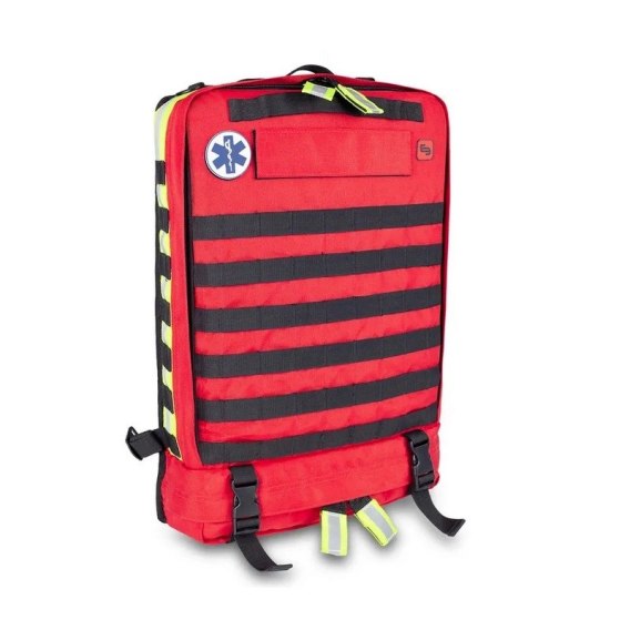 Plecak składa się z czterech dużych przegród z wentylacją oraz elastycznymi paskami, umożliwiającymi stabilne mocowanie sprzętu. Te przegrody są kodowane kolorami zgodnie z międzynarodowymi standardami (EB02.071), co ułatwia organizację i szybkie znalezienie potrzebnego wyposażenia. Dodatkowo, przezroczysta kieszeń w dolnej części ułatwia szybkie odnalezienie sprzętu medycznego.