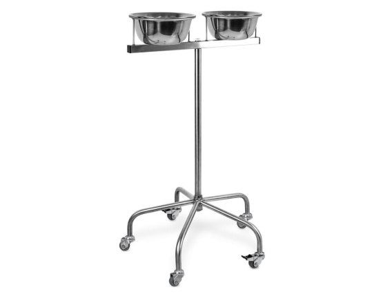 Stojak chirurgiczny SNO 2 ze stali nierdzewnej na statywie, stojak na odpady medyczne z dwoma misami