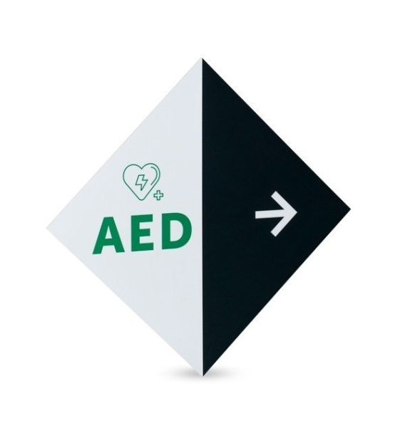 Tabliczki pozwalające na szybkie zlokalizowanie defibrylatora AED na większym obszarze. Przydatne w dużych firmach, halach produkcyjnych, galeriach handlowych, magazynach, a także we wszystkich budynkach, w których są korytarze, przejścia pomiędzy pomieszczeniami itp.