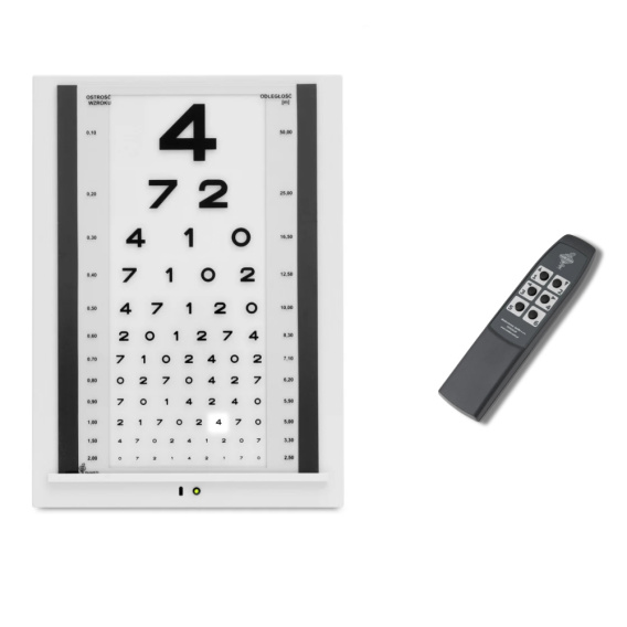 Tablica okulistyczna Snellena OKO podświetlana z pilotem dla dorosłych oraz dzieci