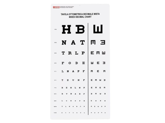 Tabela ma wymiary 28 x 56 cm, co zapewnia odpowiednią wielkość i wygodę podczas przeprowadzania testów wzroku.