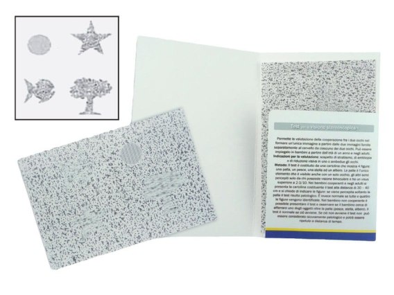 Test stereoskopowy zawierają koło, rybę, gwiazdę i drzewo. Koło można zobaczyć tylko jednym okiem. Produkt medyczny wykonany z normami medycznymi zgodnymi do przeprowadzania podstawowych badań.