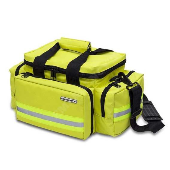 Praktyczna i lekka torba ratunkowa z dwoma regulowanymi przegrodami wewnętrznymi i kieszenią na stelaż w klapie ułatwiającą organizację materiału sanitarnego. Posiada również trzy zewnętrzne kieszenie, dwie z nich są przeźroczyste, a jedna z przodu, podzielona wewnętrznie i z elastycznymi gumkami.